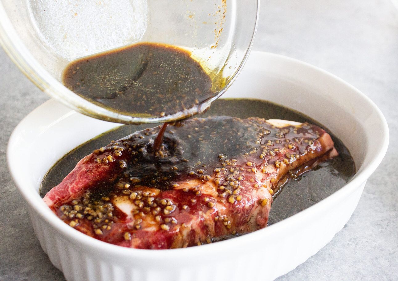 Soaking beef in a flavor packed dark marinade